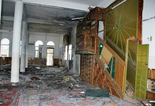 Thes photos were taken on June 4, 2011 illustrates the damage done to the Mosque in the compound of Yemeni president Ali Abdullah in Sanaa after it's attack. A precarious calm returned to Yemen's capital today as President Ali Abdullah Saleh vowed to hit back after he was wounded in shelling of his compound and a top general defected to the opposition. AFP PHOTO / STR (Photo credit should read STR/AFP/Getty Images) 2011 AFP.
